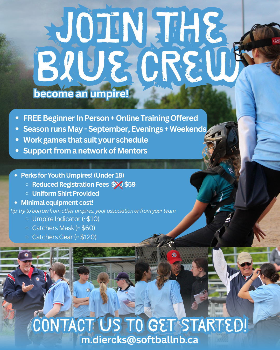 For more information or if you have questions on becoming an umpire please contact m.diercks@softballnb.ca
